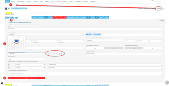 - Find Appointments in Autoflows Active Customer Page (the main dashboard) using Search