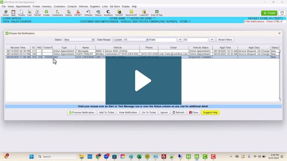 - When moved to Check In or On Lot status, the appointment in Autoflow converts to an active visit.