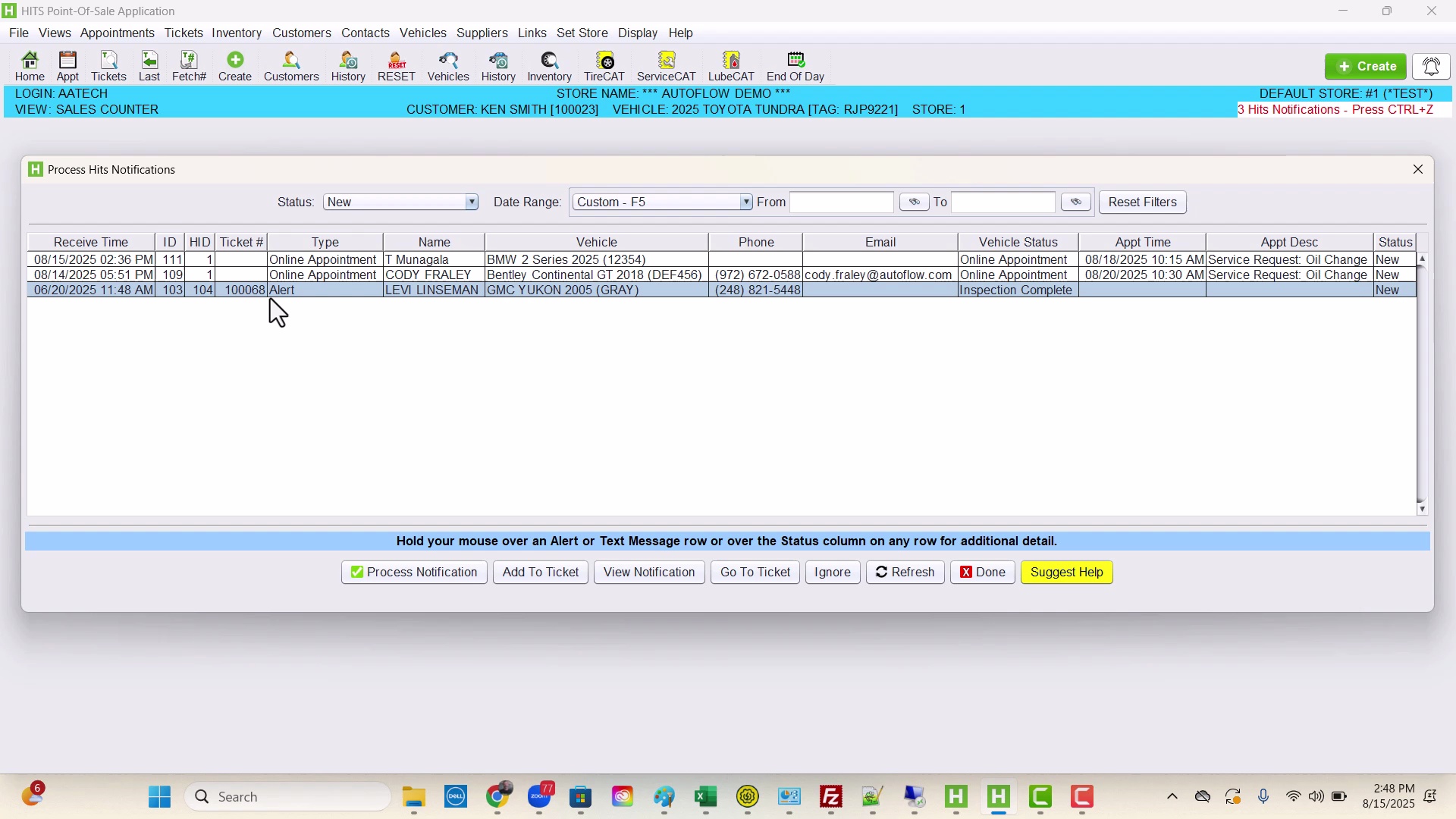 Creating New Customer appointments in HITS BPOS & Transferring to Autoflow