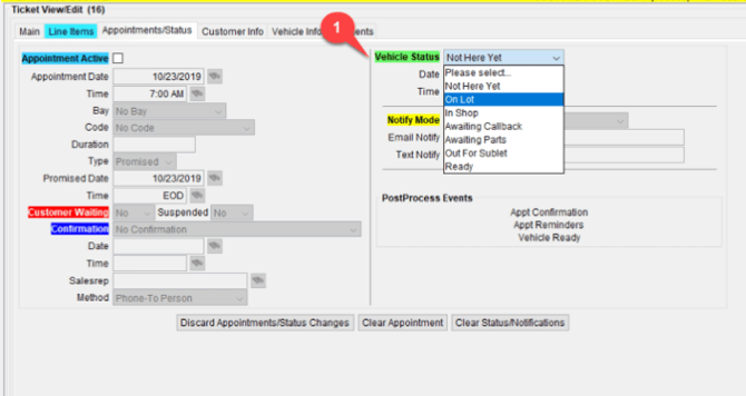 - When moved to Check In or On Lot status, the appointment in Autoflow converts to an active visit.