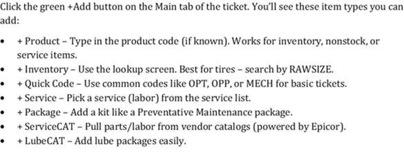 - Tires/Parts/Tools = Cost + 10% → Use code: EE TIRE-PART-TOOL
